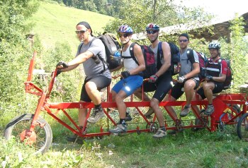 Ein unglaubliches Bike entdeckten wir unterwegs am rechten Fahrbahnrand - ein Fünfertandem mit Anhänger für weitere sieben