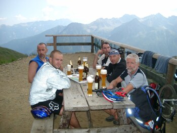 Frank und ich gegen 15:30 den Passo Di Rabbi (2467 m) bezwungen hatten. Wir fuhren dann die paar Höhenmeter bis zur Haselgruber Hütte (2425 m) ab und warteten auf die Ankunft der restlichen Montagsradler.