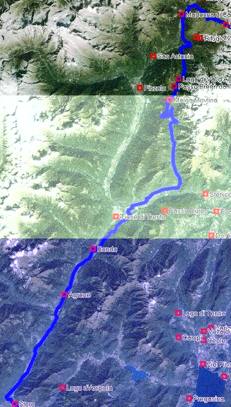 uns in der Bar „Monumento“ bei Cappo und Gelato stärkten. Jetzt gab es nur noch die Hauptstrasse bis zu unserem heutigen Ziel Storo. Diese 20 km, immer leicht Berg